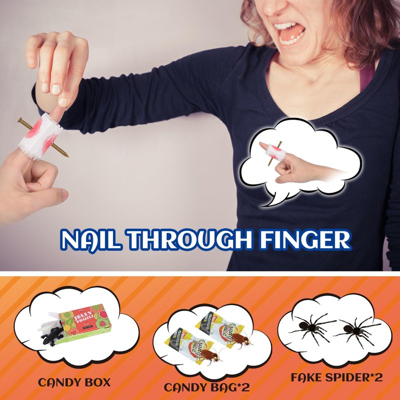 - SAFETY FIRST DESIGN: All items including the prank chewing gum, whoopie cushion, and nail through finger, are designed with child safety in mind, eliminating any potentially harmful elements.