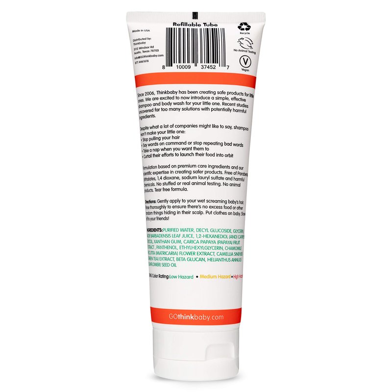 Thinkbaby Baby Shampoo for Hair & Body Wash for Sensitive Skin, Tear and Parabens Free, EWG Verified, Phthalates, Clean, Papaya, 8 Fl Oz