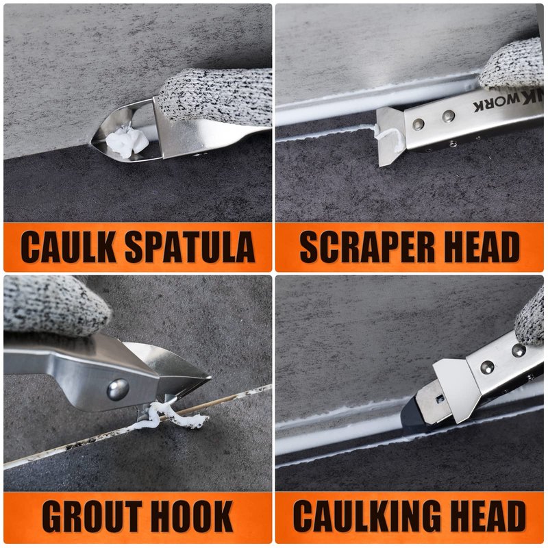 - Functional tools : The caulking tool includes a stainless steel trowel and scraper for removing stubborn old grout material, a silicon grout spreader for quickly smoothing out new grout material, and a ceramic tile joint scraper for cleaning the tile joints.