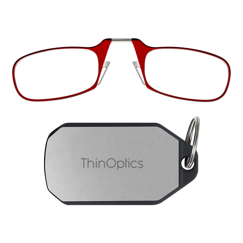 ThinOptics Keychain Case + Rectangular Reading Glasses, Red, 44 mm + 2