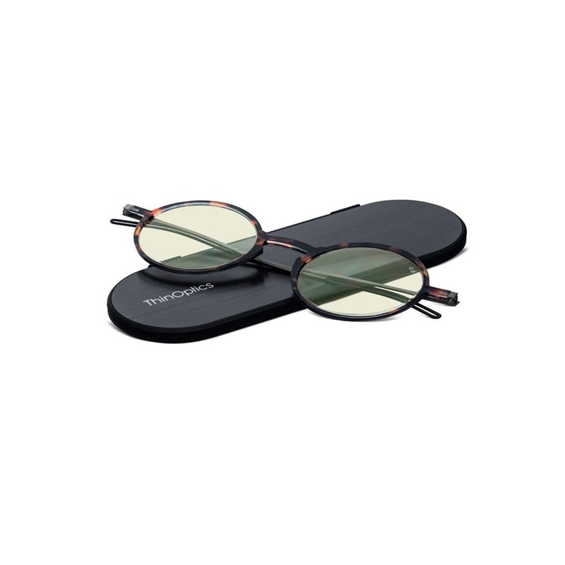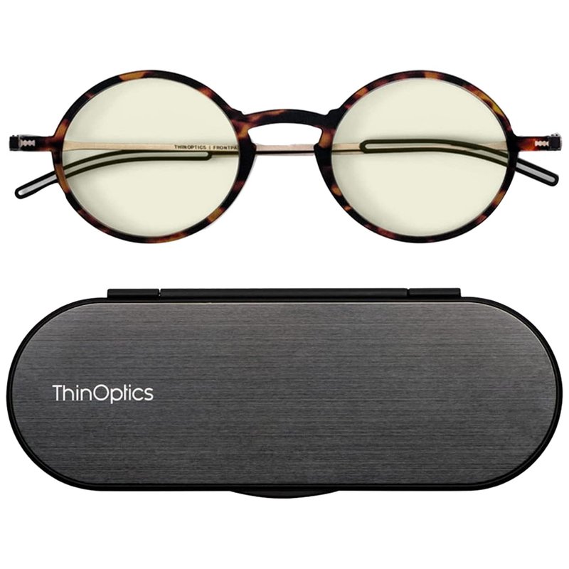 ThinOptics Manhattan Blue Light Blocking Glasses Reading, Round/Tortoise, 44 mm + 2