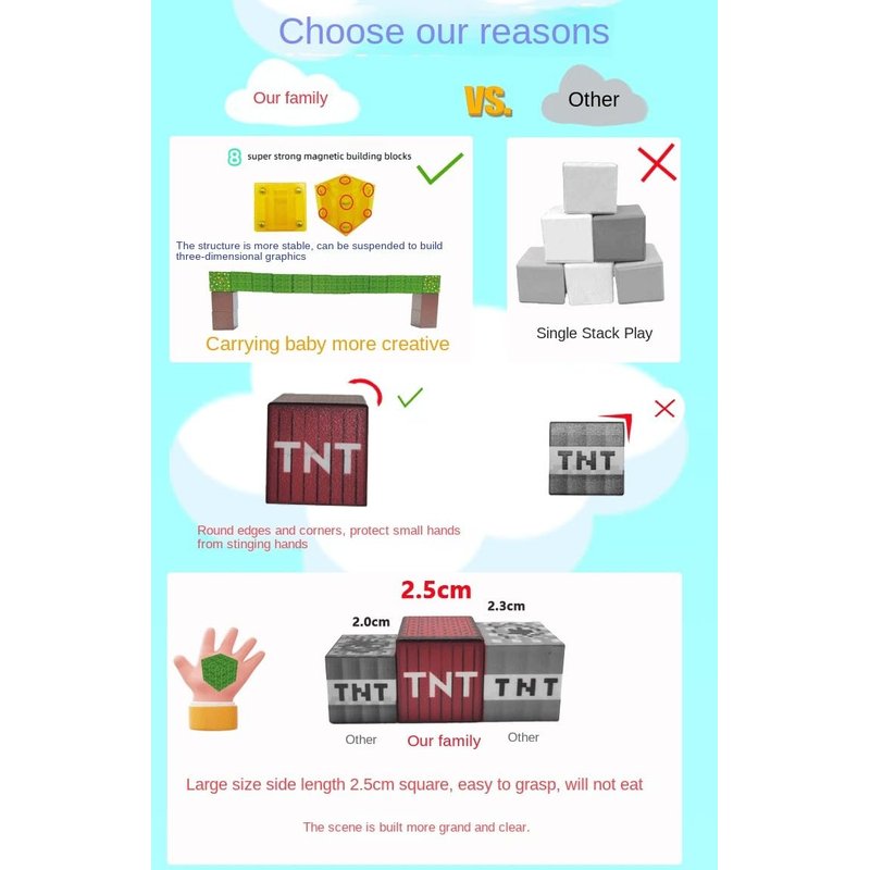 - Deal choice for children aged 3-8: designed specifically for young architects, with a large-sized side length of 0.98 inches, about 1/5 larger than similar products, easy to grasp, suitable for small hands.