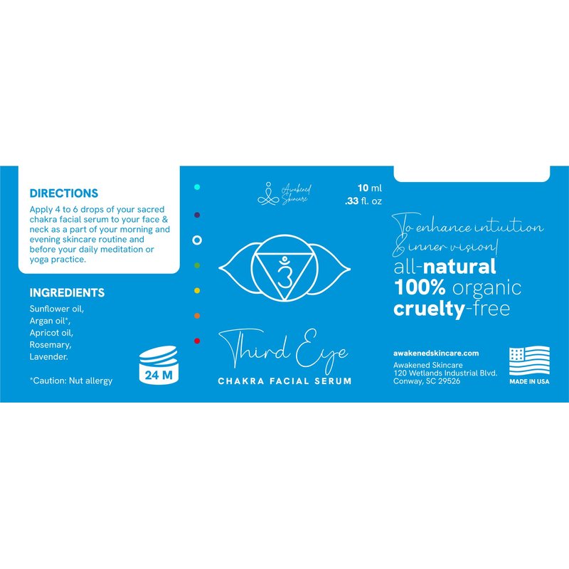 Third Eye Chakra Facial Serum Essential Oil Blend, Natural & Organic Moisturizing Serum for Face with Sunflower, Argan, Apricot, Rosemary, Lavender Oils for Spiritual Journey, Peace, Deeper Connection
