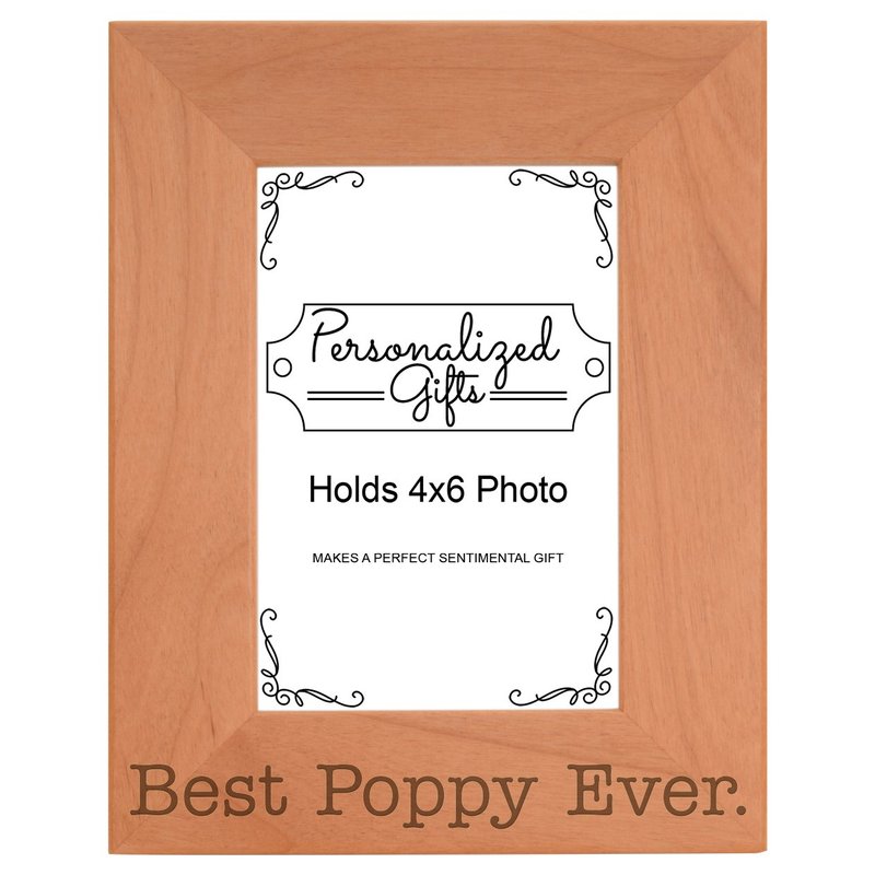 ThisWear Birthday Gift for Grandpa Best Poppy Ever Natural Wood Engraved 4x6 Portrait Picture Frame Wood