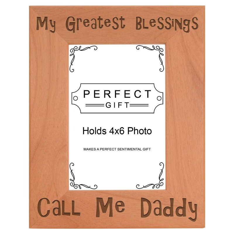 ThisWear Dad Father's Day Gift Blessings Call Me Daddy Natural Wood Engraved 4x6 Portrait Picture Frame Wood