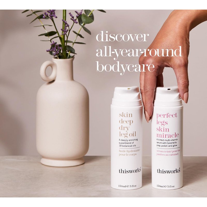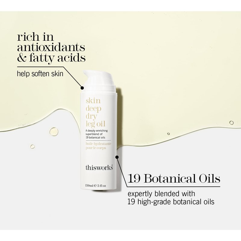 THISWORKS skin deep dry leg oil: Deeply Enriching Blend of 9 Essential Oils for Shiny, Soft Skin, 5.28 Fl Oz (150ml)
