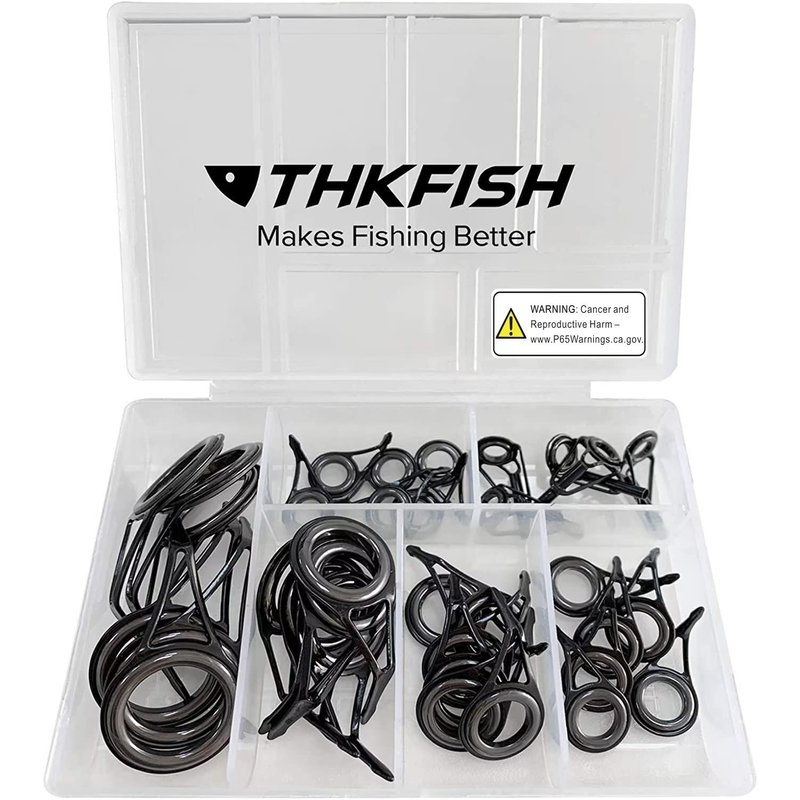 THKFISH Rod Repair Kit Rod Tip Repair Kit Ceramics Tips Stainless Steel Carbon Spinning Rod Guides Fishing Rod Repair Kit Black 35pcs