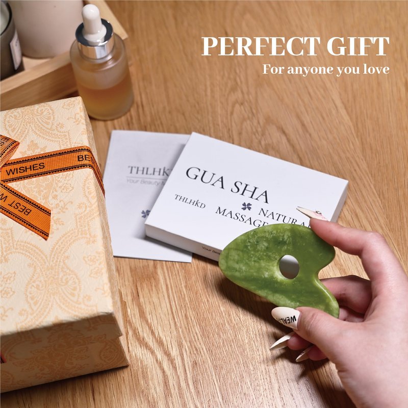 THLHKD Gua Sha Facial Tools, Natural Jade Stone Guasha, Guasha Board for SPA Acupuncture Therapy Trigger Point Treatment, Gua Sha Scraping Massager for Jawline Sculpting and Puffiness Reducing