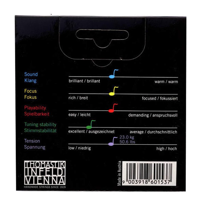 Thomastik-Infeld VIT100 Vision Titanium Solo Violin Strings, Complete Set, 4/4 Size, Synthetic Core Vision Titanium Solo™ strings are wound on an advanced synthetic core, while their highly polished surface allows for effortless left-hand technique. They offer incredible focus on the upper strings and clarity and are perfect for soloists. These strings settle in very quickly and offer unparalleled tuning stability. They are more durable than most synthetic core strings and respond quickly. Ball ends are made of Titanal.