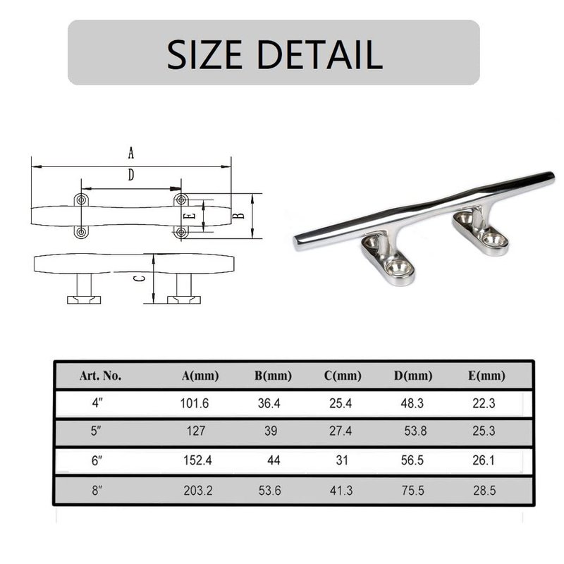 - 316 stainless steel boat cleats match with boat, yacht, boat docks, decks, piers for tying up boats, kayaks.