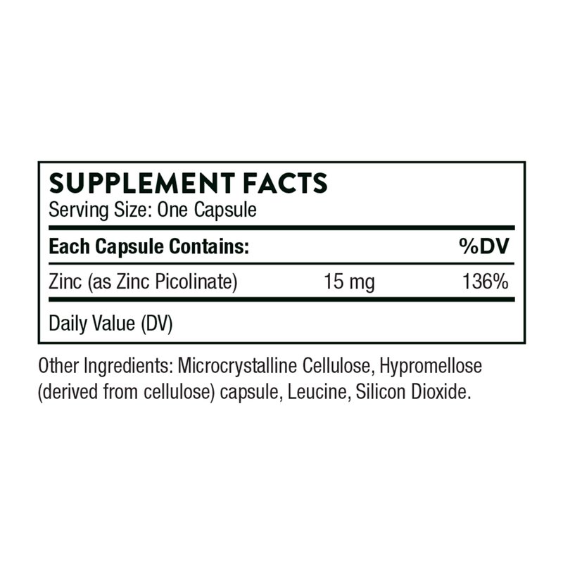 Thorne Zinc Picolinate 15mg - Highly Absorbable Zinc Supplement - Supports Wellness, Immune System, Eye, Skin, and Reproductive Health - Gluten-Free, Soy-Free, Dairy-Free - 60 Capsules