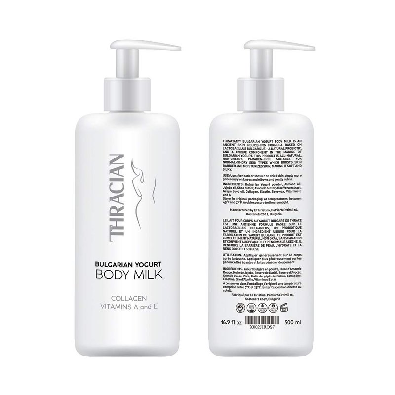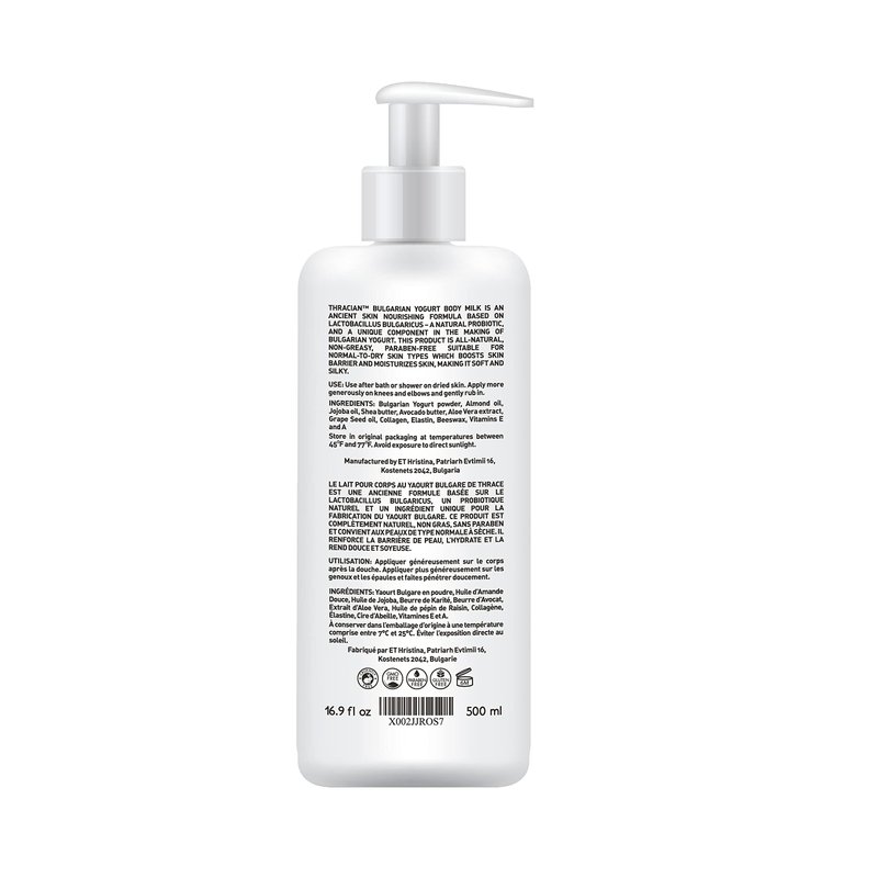 Thracian Bulgarian Yogurt Natural Moisturizing Body Milk with Essential Oils, Collagen, Vitamins E & A, Extra Soothing Lotion for Sensitive and Dry Skin, Non-Greasy, 500 ml, 16.9 Fl Oz