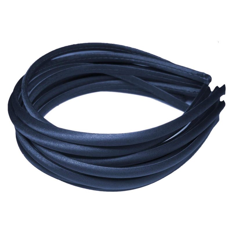 Threddies 12pc Skinny Satin Headbands - 7mm wide, solid color packs (Navy Blue)