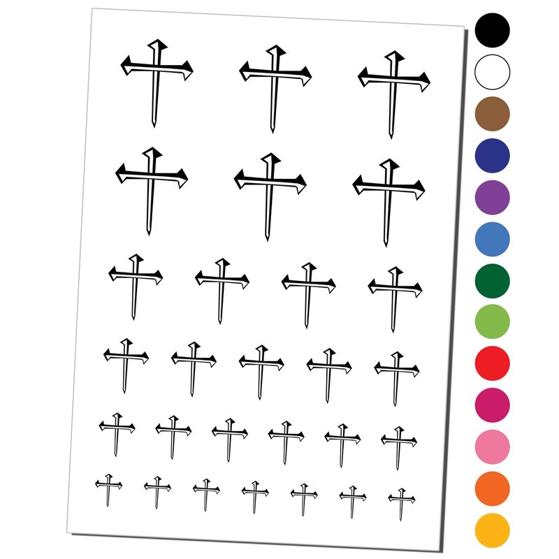 Three 3 Nails Cross Christian Stylized Temporary Tattoo Water Resistant Fake Body Art Set Collection - Black (One Sheet)