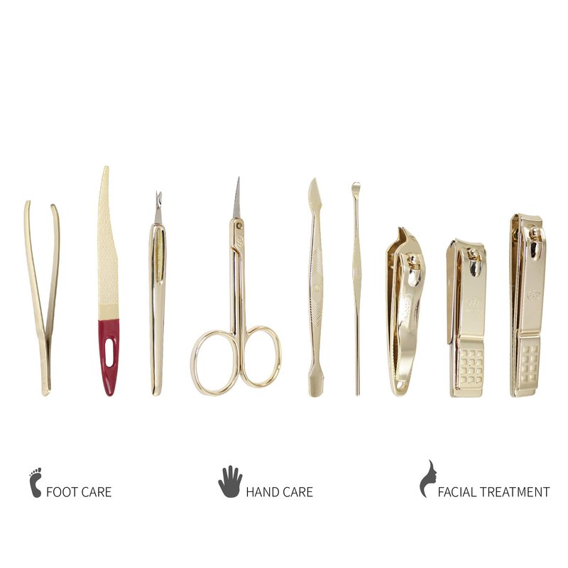 - Model Number: TS-343EX, Total 9 Pcs: Small Nail Clipper, Nail Clipper, Cuticle Trimmer, Beauty Scissors, Nail File, V-type pusher, Ear Pick, Double-sided Push Stick, Tweezers