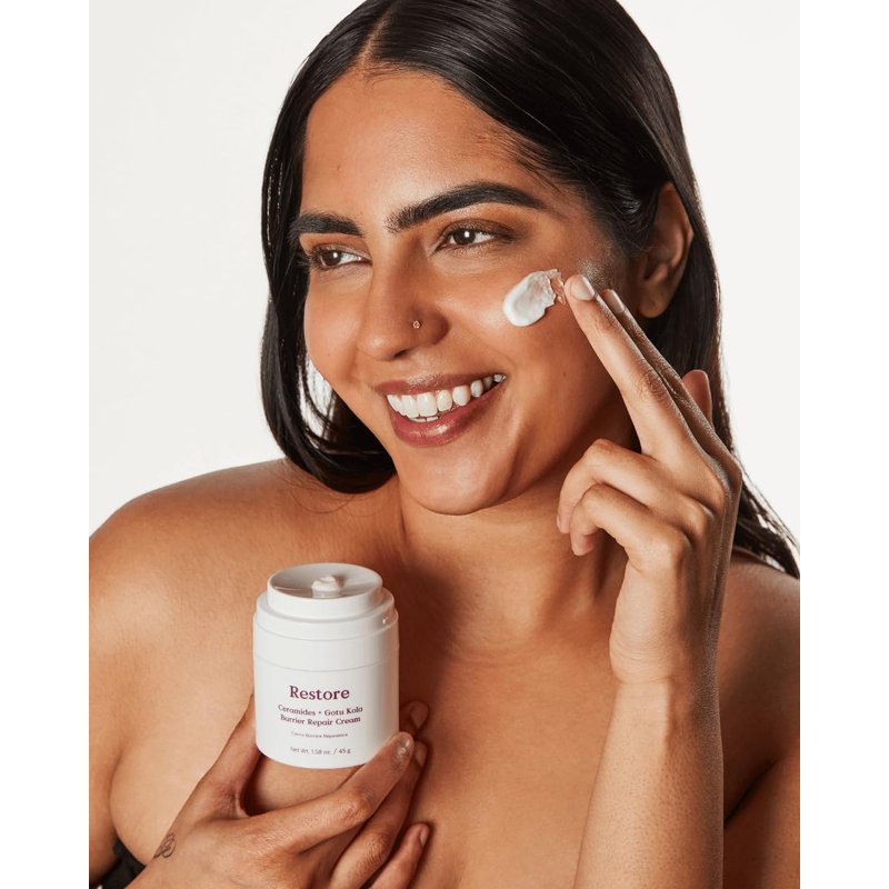 - Soothing Face Cream: This fast-absorbing cream with Ceramides and Gotu Kola helps support a compromised barrier, reduce the appearance of redness and restore radiance.