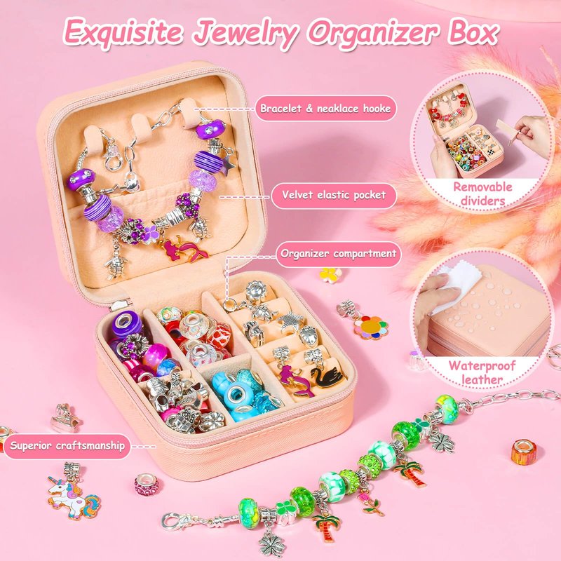 - 🎁Great Gift Ideas for Girls: The charm bracelet making kit is perfect for DIY making all kinds of necklaces, bracelets and ankles, with a nice carrying gift box, it is ideal girls presents for birthday and Christmas. Beautiful stuffs are meant to be shared among family and friends