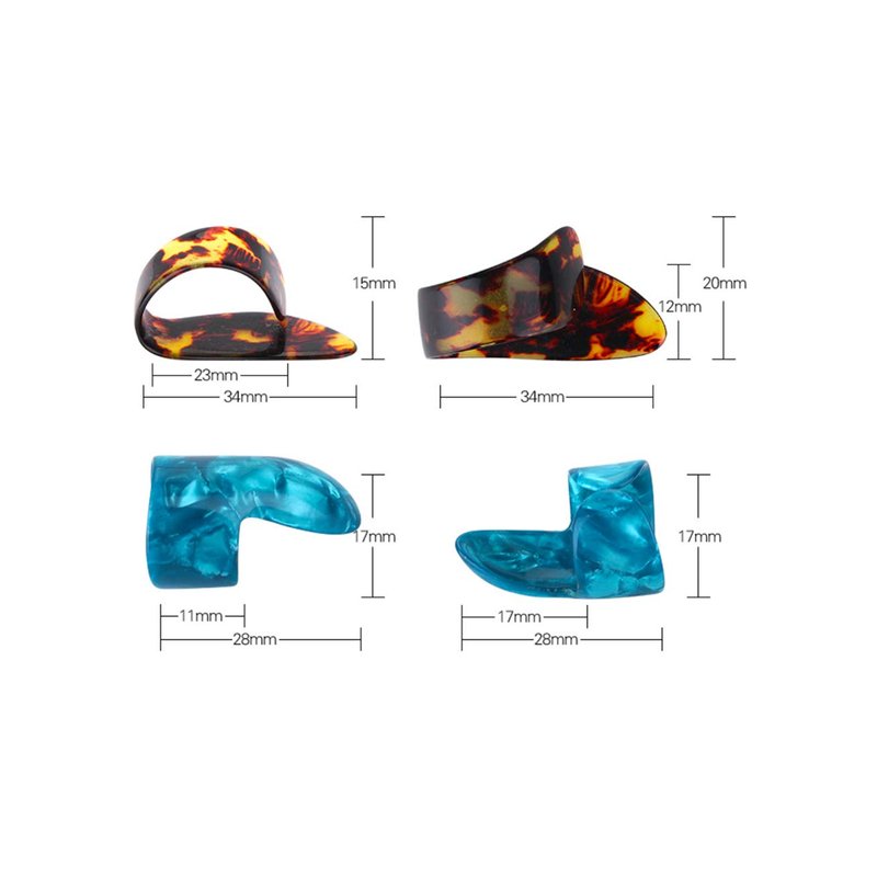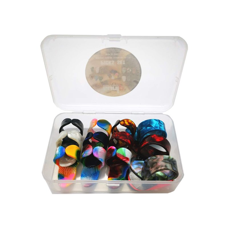 - ADJUSTABLE & COMFORTABLE: Are you being bothered that the finger picks are unsuitable with your finger size? Our thumb finger picks are made of Celluloid Material, which can adjust size easily. And the thumb picks are COMFORTABLE to wear and can ALLEVIATE finger ache while long-time practice