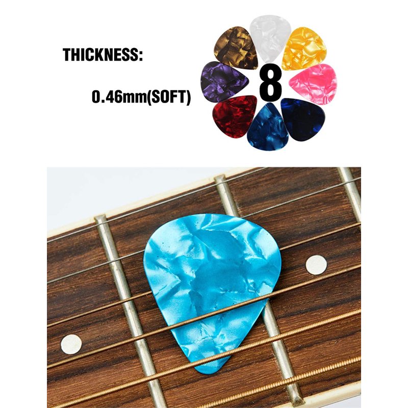 - FREE GIFTS: 8pcs drop-shaped celluloid picks 0.46mm (soft) are usually used for sweep picking