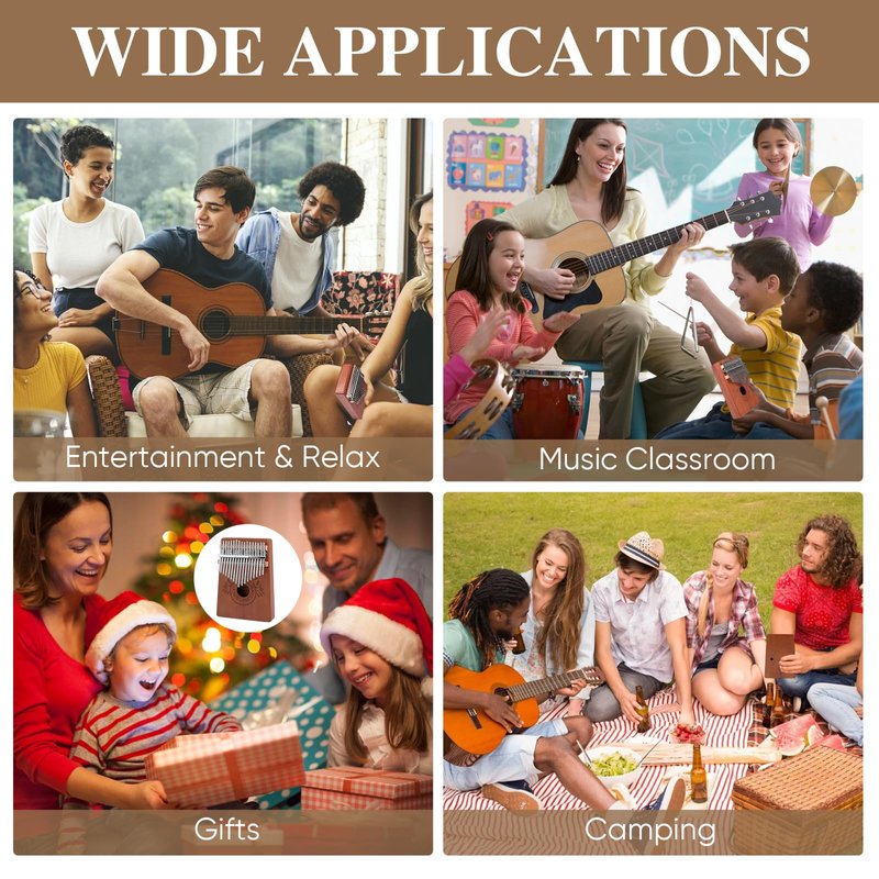 Unlock the melodious wonders of the 17 keys thumb piano! Also known as a Kalimba or Mbira, the 17 keys thumb piano is a captivating and versatile musical instrument that fits right in the palm of your hand. Harness the power of your fingertips to create enchanting melodies and soothing rhythms. With its compact size and intuitive design, the 17 keys thumb piano is perfect for musicians of all levels, from beginners to professionals.Lightweight & portable Its portable and lightweight nature allows you to bring your music wherever you go - whether it's a beach gathering, a jam session with friends, or simply relaxing at home. How to tune your kalimba1: Tuner You can use a real tuner or download an App.Android system app: gStrings Apple system app: Instuner2. Tune with hammer:Making tines longer (from the point where they are held down on the bridge) will lower their pitch, and making them shorter will make their pitch higher.PlayTechnique Hold the piano with both hands and play the keys with your thumbs. It is recommended to use your fingernails to pluck the keys!Searching for a unique and enchanting gift? Look no further than the captivating Thumb Piano!Whether they are musicians, music enthusiasts, or simply appreciate the enchanting power of music, this gift is bound to bring smiles and musical inspiration. Let the Thumb Piano create melodies that resonate in their hearts and create cherished memories that last a lifetime.