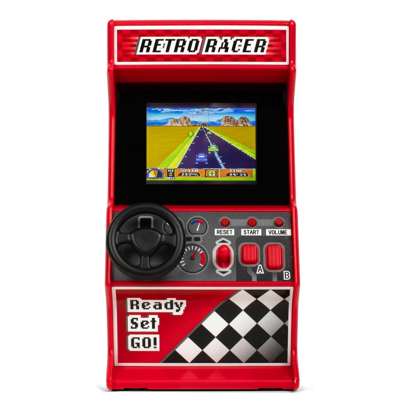 - 🕹 Relive the classic 80's racing games in this mini handheld retro arcade racing games machine that can be played handheld or on a table.