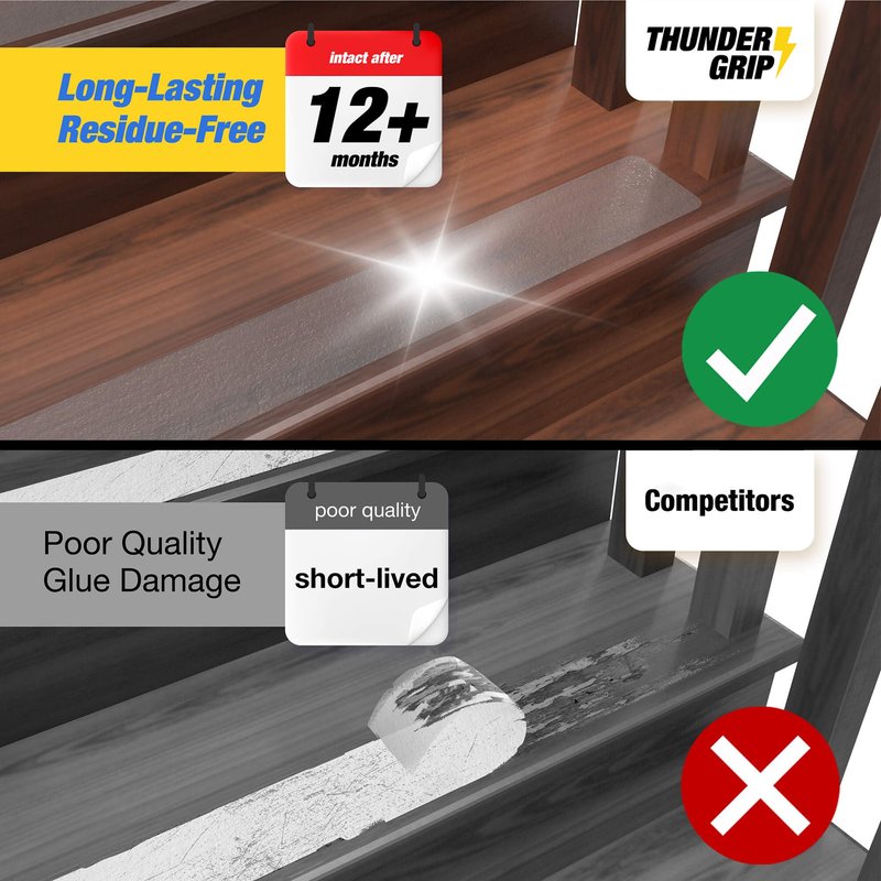 - ✅ [EASY APPLICATION] Applying our vinyl non slip stair treads indoor for wood is a breeze. Our anti-slip adhesive stair treads act as temporary step treads, providing a secure grip without damaging your staircase. Remove it anytime you want.
