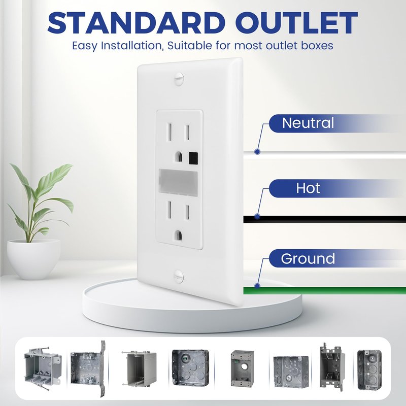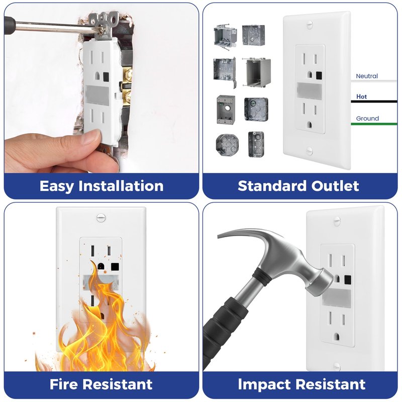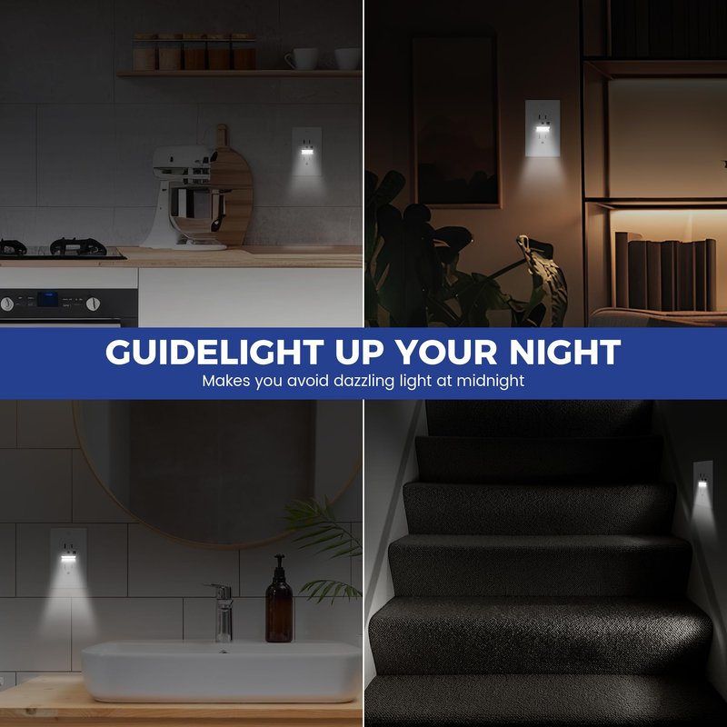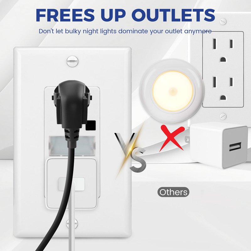 - Tamper Resistant Outlets: Night light built-in wall two tamper resistant outlet socket, won’t harm to kids and others who might touch it. illuminate the floor or step-edge for safe footing, prevent you stepping on toys at dark