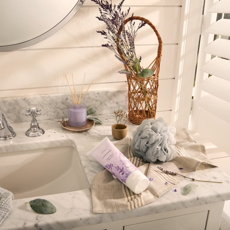 - Thymes Lavender Body Scrub: A soothing, exfoliating body scrub infused with hydration-boosting sodium hyaluronate and argan shell powder that gently cleanses to reveal soft, renewed skin while argan oil soothes and moisturizes.