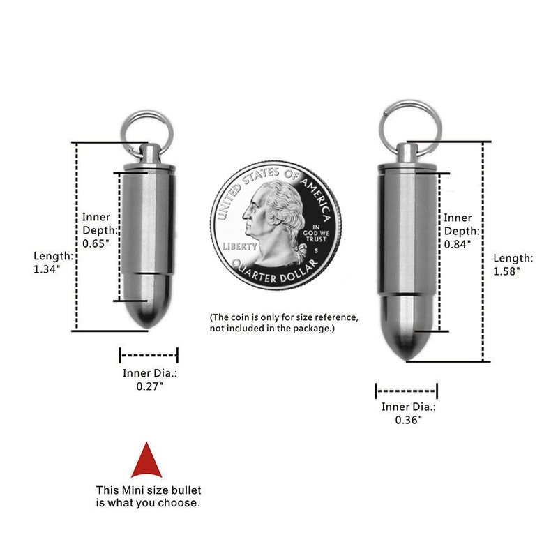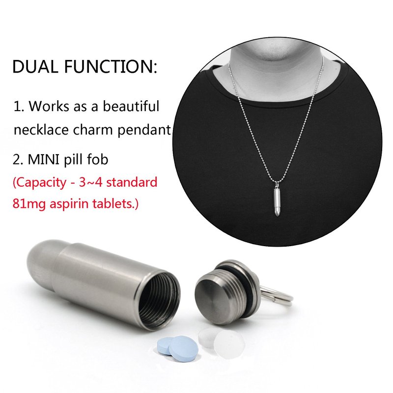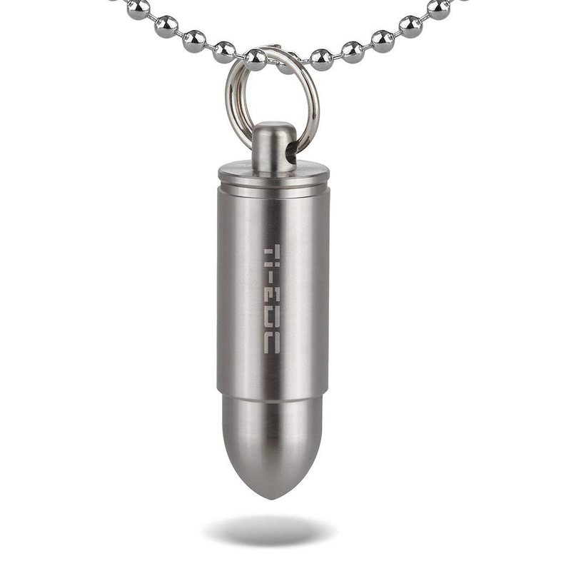 - YOU WILL GET: 1x TI-EDC Mini titanium bullet pill holder(LIFETIME WARRANTY), 1 x stainless steel split ring, 1 x stainless steel necklace(Length:23~24"), 1 x extra O-ring.