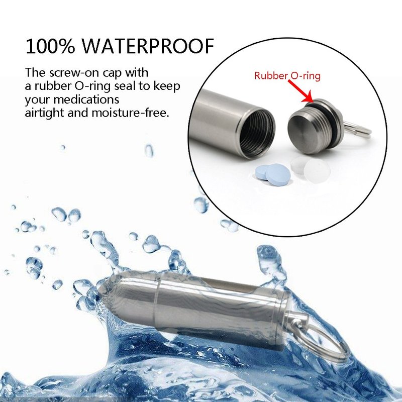 Thanks to the titanium alloy material, this pill container is also Non-toxic, light weight and Hypoallergenic, even the people who is susceptible to allergies can use it. With the rubber O-ring, this pill container is waterproof, you can scuba dive with it and your pills will stay dry.