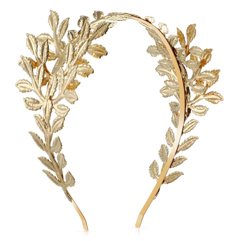 - [ ONE SIZE FITS ALL ] The shape of the Headband is an exquisite gold bay leaf, famous in the Mediterranean. The bay leaf and the wire are gold-plated and wrapped around the matching gold Headband, comfortably attached to the wearers.