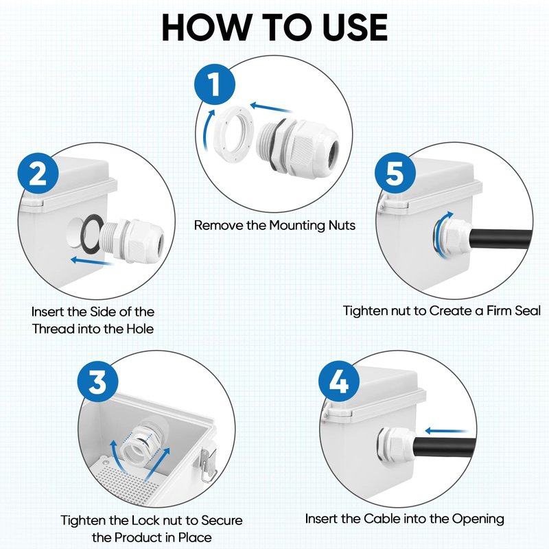 - [WIDE APPLICATIONS] Whether you need waterproof cable pass through for your home, office, or industrial project, our junction box adapter kit has got you covered, providing a versatile solution for all your wiring needs.