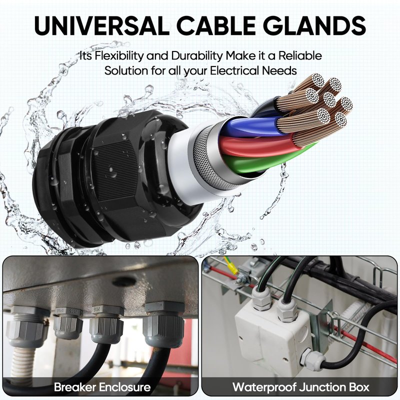 - [DURABLE MATERIAL]: Made from high-quality UV resistant and fire-resistant nylon materials, these cable glands are durable and long-lasting, ensuring a reliable connection for years to come.