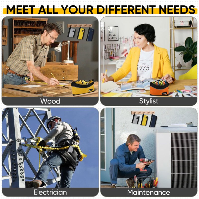 - [MULTIFUNCTIONAL] The tool bags are available in a variety of colors and sizes, making it easy to organize your items and tools. These versatile bags can store screws, accessories, office supplies, and daily essentials. They can also serve as pencil bags, accessory holders, cosmetic pouches, stationery organizers, or office companions.