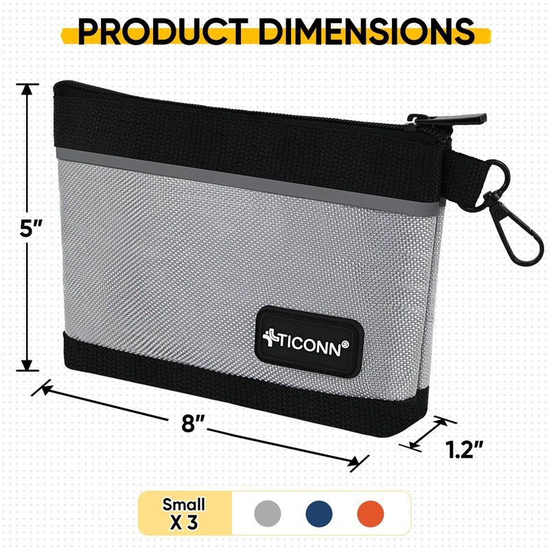 TICONN Tool Pouches with Zipper, 1680D Oxford Small Tool Bags, Utility Bag Zipper Pouch for Tool Organizers and Storage (3 Pack Combo)
