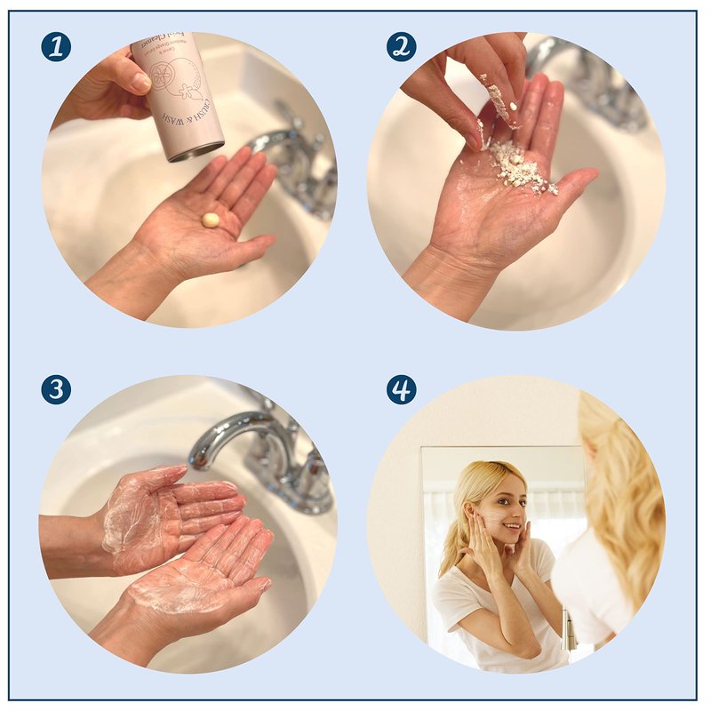 Our exfoliating cleanser tablets are gentle enough for everyday use and will leave your skin feeling smooth, hydrated, and moisturized. Each tablet is pre-portioned for single use. Unlike liquid facial cleansers that leave product at the bottom of each bottle, our tablets produce no waste, so you can get your money's worth! Each refill includes 60 pre-portioned tablets. Purchase a Tidalove tin can or label your own air-tight container at home to store the tablets.