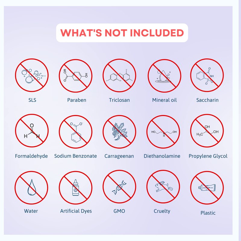 - NATURAL EFFECTIVE FORMULA: Tidalove’s toothpaste tablets are free from SLS (sulfate), dyes,triclosan, parabens or artificial sweeteners. All the ingredients except fluoride are EWG green grade. This carefully formulated toothpaste is of course vegan and cruelty-free.
