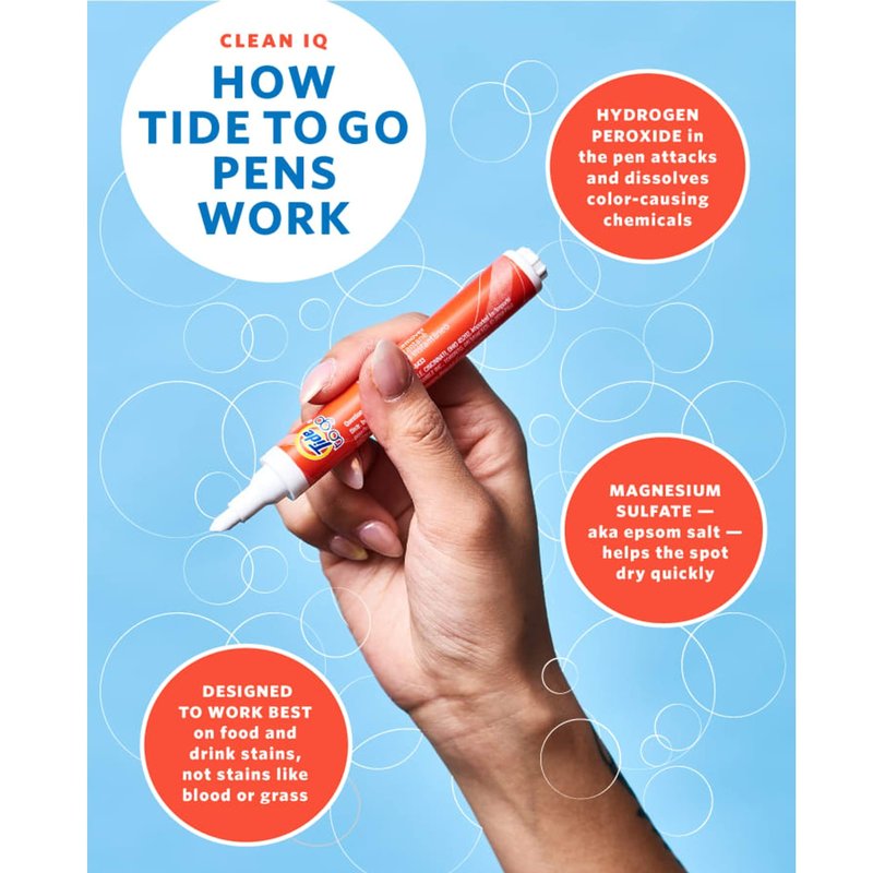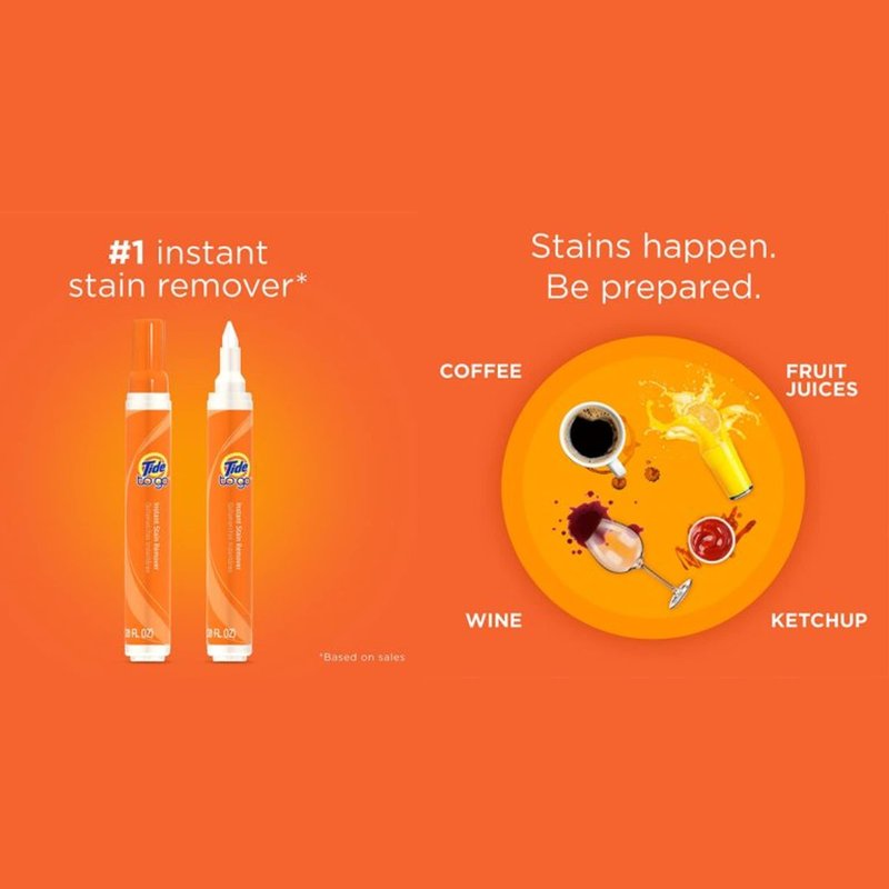 Tide to Go is the portable, instant stain remover that helps eliminate many fresh food and drink stains on the spot. Keep a Tide to Go in your briefcase, car, purse and kitchen — everywhere you encounter stains.