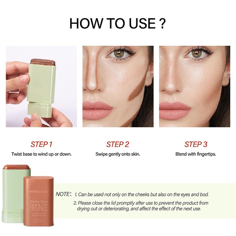 - 💕3-in-1 Cream Stick: Cream blush stick can used for eyes, lips and face blush three cosmetics. Just gently apply it to your skin, you will achieve a natural and perfect matte look.