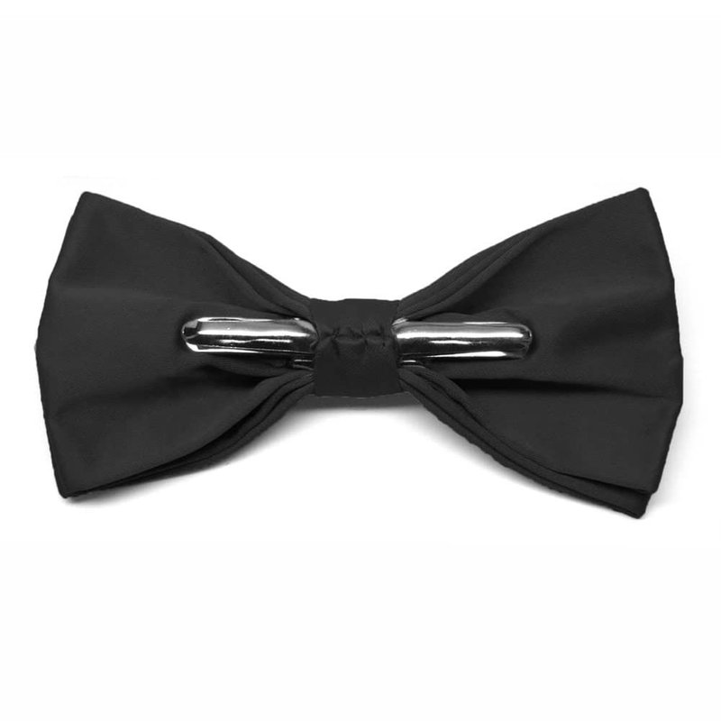 Wear a perfect bow every time with this clip-on bow tie. This pre-tied bow tie features a heavyweight clip that discretely attaches to either side of your shirt collar material for a secure fit. One size fits all, regardless of neck size. To secure your clip-on bow tie the shirt collar must be placed between the bow tie fabric and the metal clip (not between the double metal clip). With the clip facing you, place your forefingers on the front of the bow and your thumbs on either side of the metal clip (you'll feel the ends of the metal clip under the fabric). Gently press your thumbs forward to open the bow. Place your shirt collar between the bow tie fabric and the metal clip and snap the bow tie closed to secure.