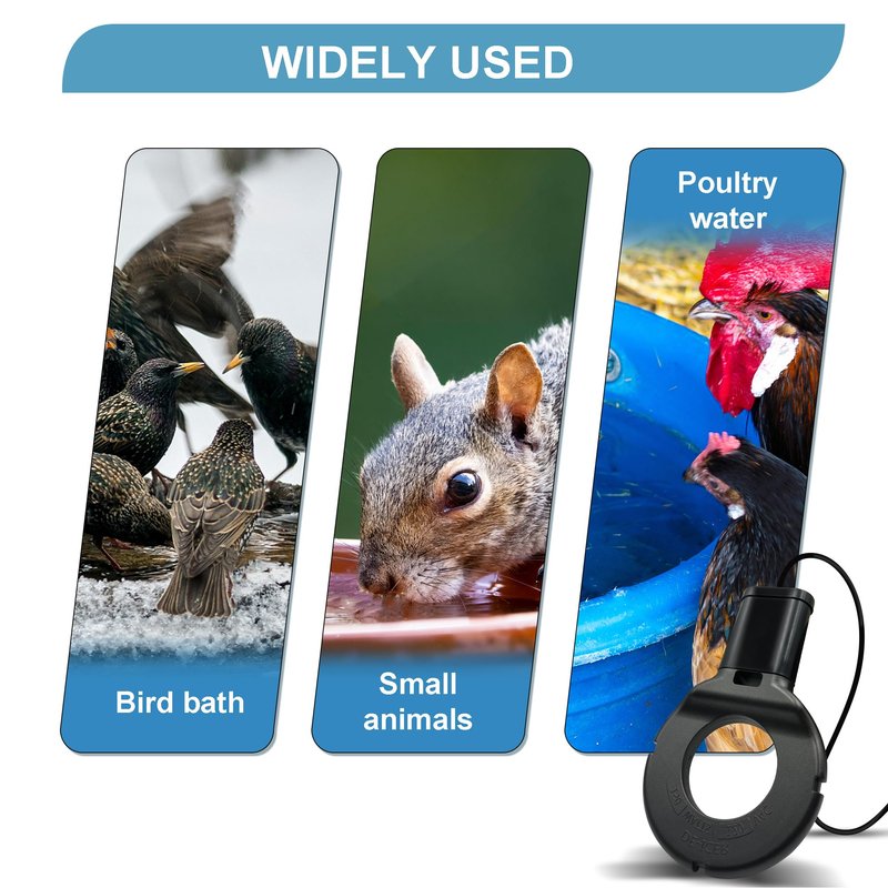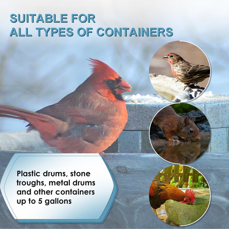 - 150W De-Icer: prevents water from freezing in winter temperatures as low as 10°F and keeps water flowing fresh. Can be used in poultry drinkers, bird baths and other 5 gallon water containers