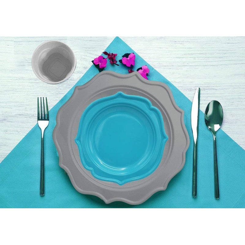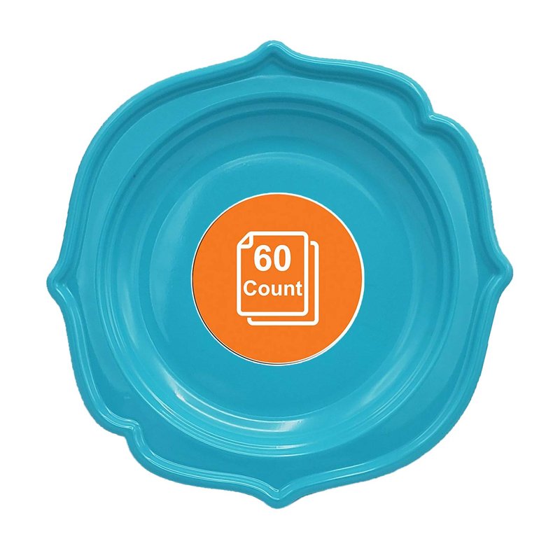 Tiger Chef 60-Count, 8-inch Turquoise Color Round Scalloped Rim Disposable Plastic Plate Set Includes 60 Plastic Salad Plates - BPA-Free