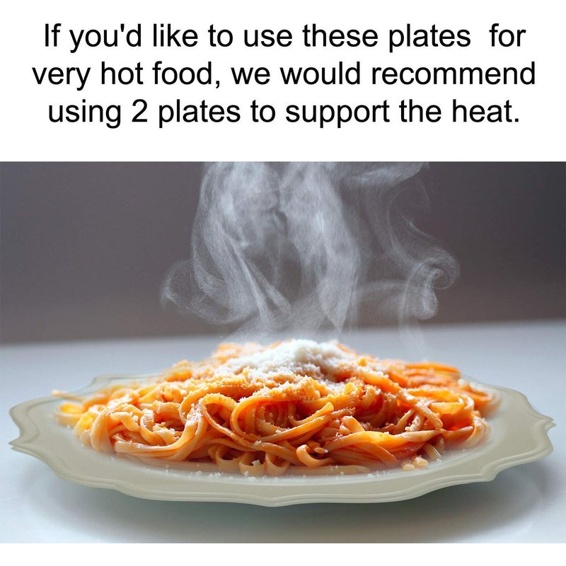 - LIGHT WEIGHT: These plates are thin and not recommended for food that is extremely hot. If you'd like to use it for very hot food, we would recommend using 2 plates to support the heat.