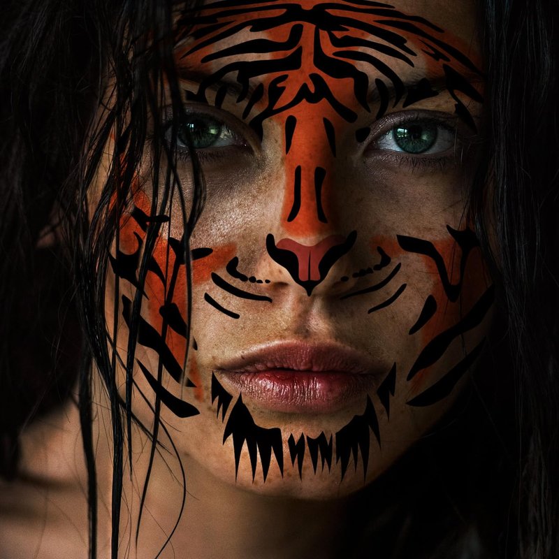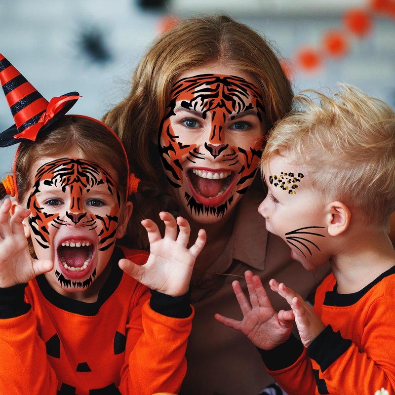 Tiger Face Tattoos, 6-Sheet Tribal Tiger Temporary Face Tattoo Kits, Tiger Head Body Decal Set for Men Women Adults Kids Halloween Costume Accessories and Parties