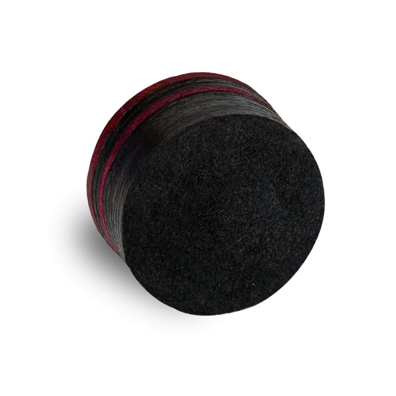 *** All genuine Tiger Onyx-LTD Cue tips will have the name, the year it’s made, Tiger logo and Made in USA. If it’s not on the back end of the tip, then it’s not genuine Tiger tip.*** Onyx - LTD laminated cue tips are made with the same bore hides as our Sniper tips. Each of the finest layers are then collected and aged with Tigers’ own secret process, turning each layer to black without using a black color dye. It is a very slow and time consuming process, however the end result is unbelievable to say the least. During this process, we are able to soften the layers to medium hardness, while making the leather firmer. It makes the tip easy to maintain and helps to cut better during repairs. Onyx - LTD is the most consistent by far of any tips made. It will only be produced in limited numbers per year. Purpose of the third red color layer from the bottom is to warn you when it's time to replace the tip & cosmetically make the Onyx-Ltd tip different than any other black color tip. This is to help you identify that genuine Onyx tip will be installed by your local installer. For those who want to have the best, Onyx- LTD is your choice, because it’s pure and it’s perfect. Installation: Glue from the embossed initial side Product specifications: Tip type: Play tip - Material: Finest quality pig skin - Number of layers: 10 - Tip Hardness: Medium - Tiger Durometer (Type A): 95 - Mueller Durometer (Type B/C): 73-76 - Tip Diameter: 13 or 14 mm - Tips Per Box: 12 tips - Made in USA - Tips are sold individually! - All prices shown are for individual tips!