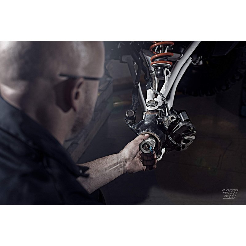- Bearings can now be greased without removing the axle or suspension components for use with Polaris ATV, UTV, and SxS's. Simply remove the wheel, brake caliper and hub, insert the greaser into the bearing, and then guide the axle through the center bore.