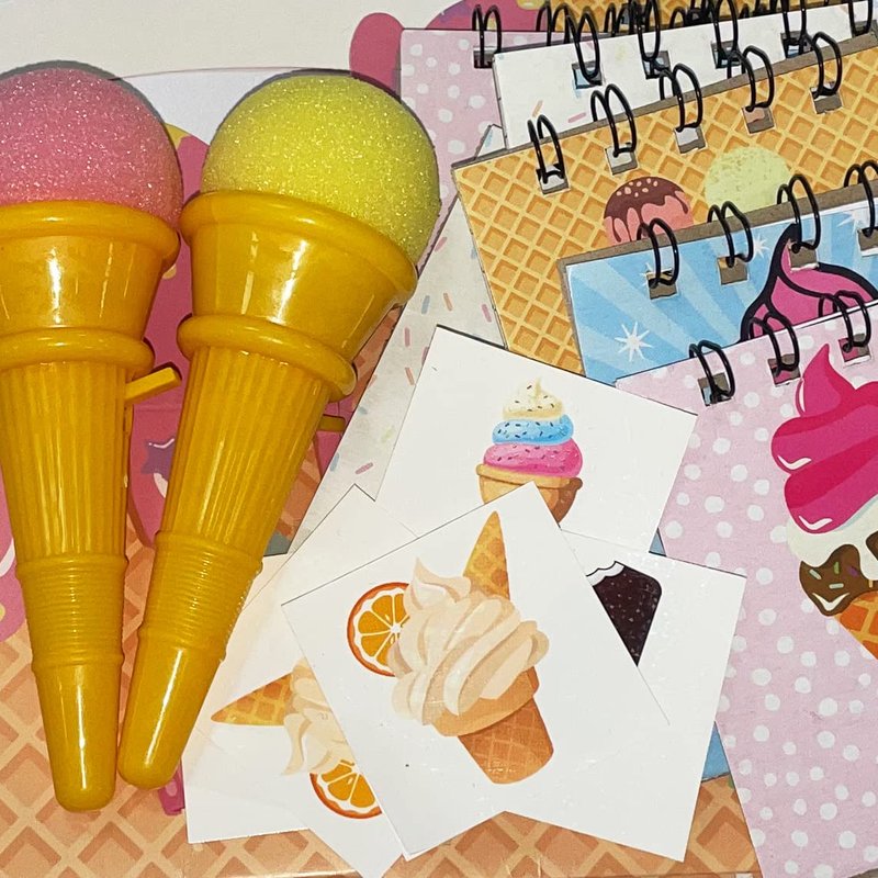 - 12 adorable spiral notepads with 4 different ice cream designs that kids can use to write or draw beautiful pictures!
