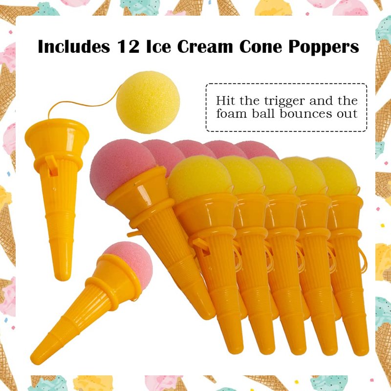 - 12 ice cream cone poppers toys that kids will certainly enjoy and 144 ice cream themed temporary tattoos that kids will absolutely love!