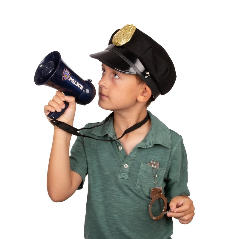 This set includes a police hat, police handcuffs, and a real megaphone. Police costume set is one size fits most. Fun for all ages. Police megaphone really works making police work so much fun!