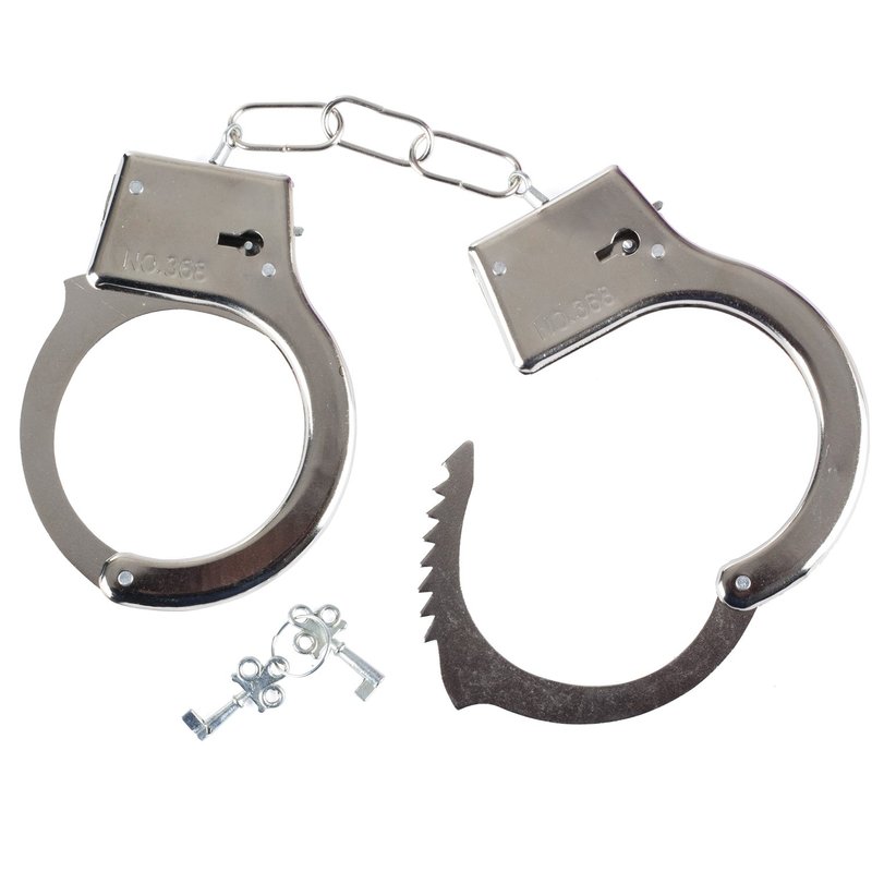 - This set includes police hat, police handcuffs, and a real megaphone.